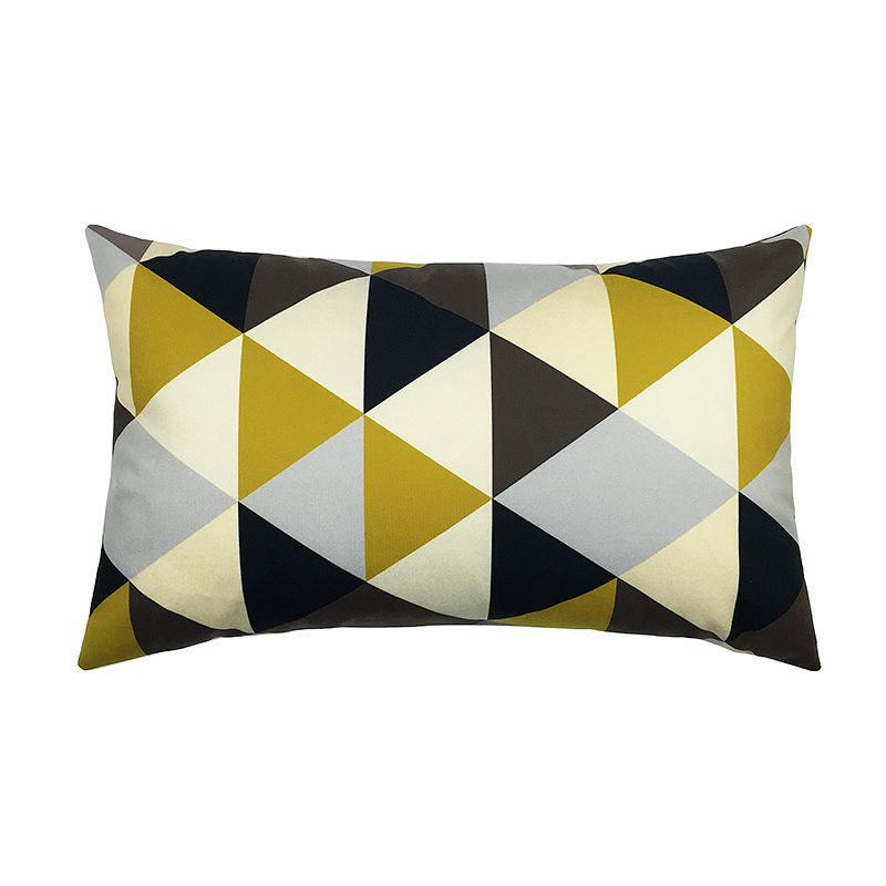 白、マットイエロー、薄いグレー、グレー、黒のマルチカラーのクッションカバーです。