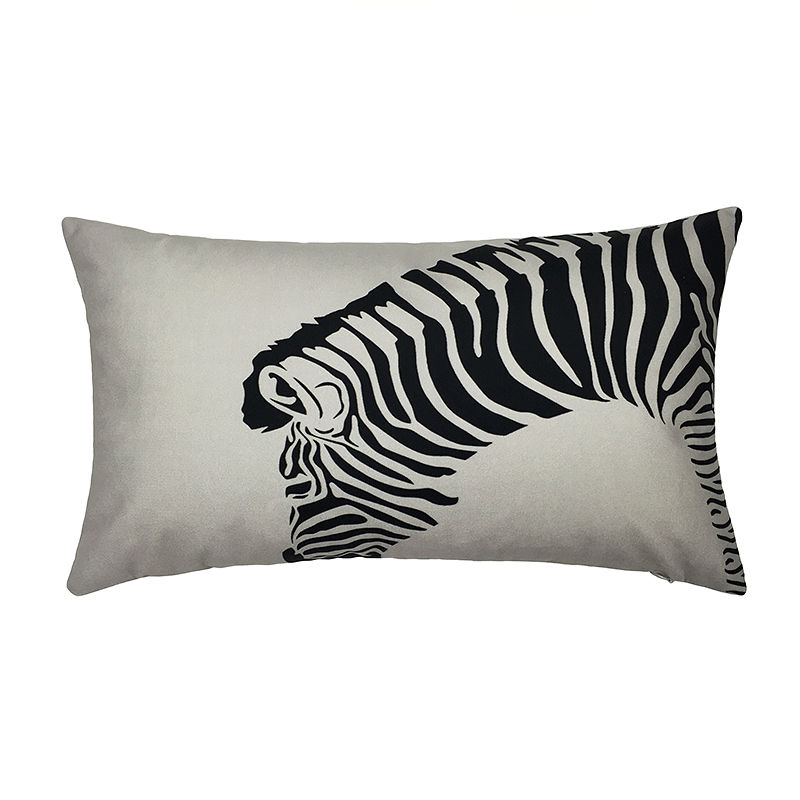 白い生地に黒色のシマウマの柄を入れたクッションカバーです。