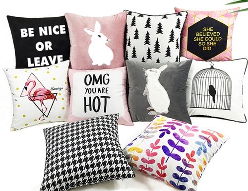 黒い生地に白い千鳥柄を入れたクッションカバーです。