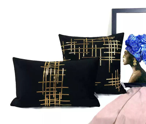 金色のアーティスティック線の黒色クッションカバー