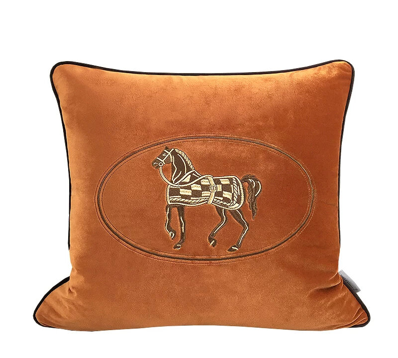 刺繍クッションカバー Horse 橙色