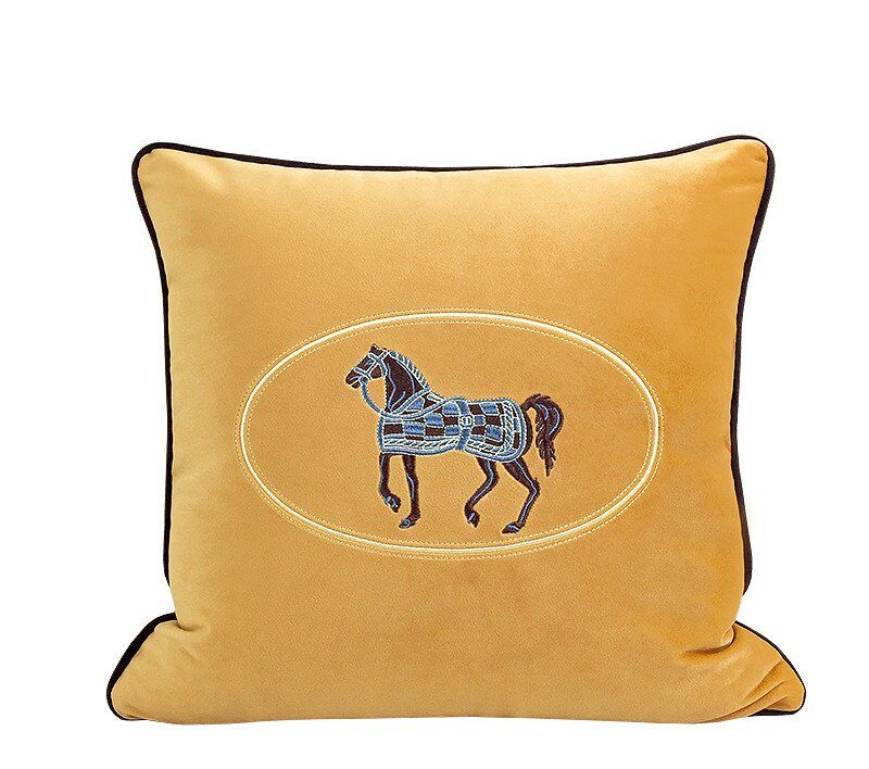 刺繍クッションカバー Horse 黄色